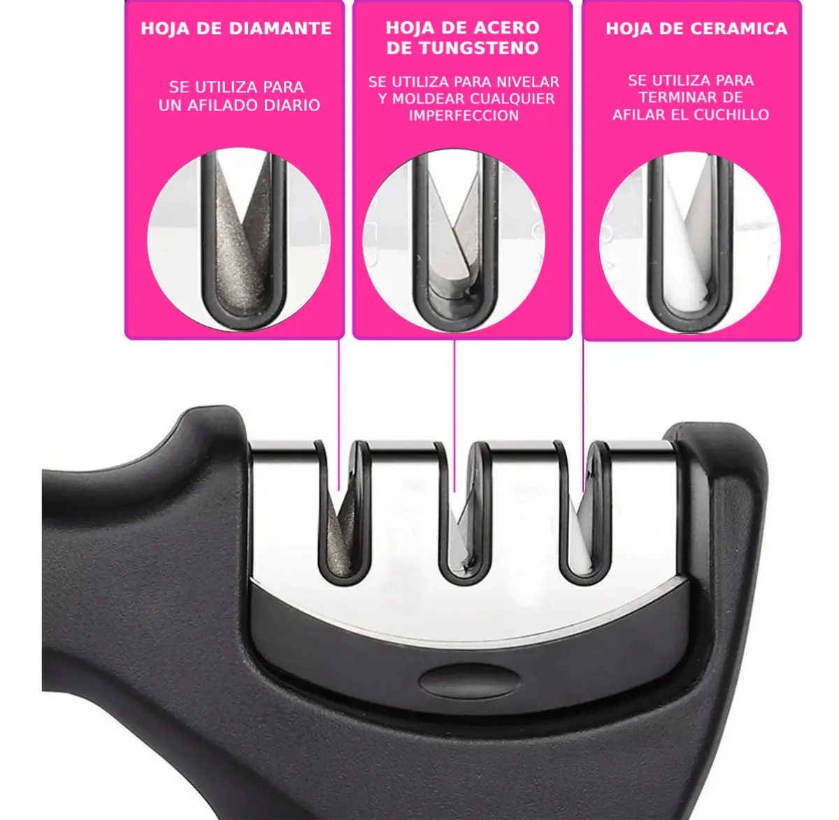 ✔️ 3 ranuras de afilado: desbaste, afinado y pulido.
