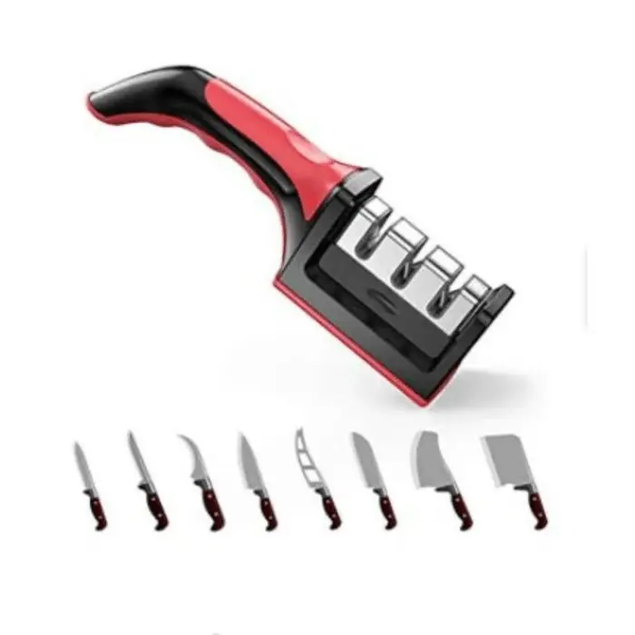 Afilador de cuchillos 3 en 1, práctico y seguro. Afila, ajusta y pule tus cuchillos en segundos, dejándolos como nuevos.